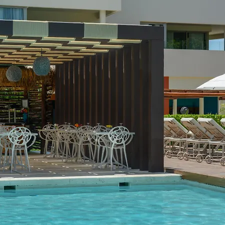 The rooms at Privilege Aluxes Adults Only hotel are allergy-free and fitted with a flat-screen TV with satellite channels as well as a mini fridge bar, tea and coffee-making facilities. Also, they feature tile flooring. Guests can enjoy views of the city.
